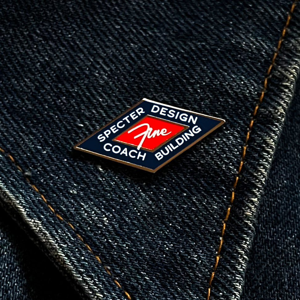 A fine addition to any lapel, the fine coach building pin. This design is based on our sign which hangs inside the workshop.